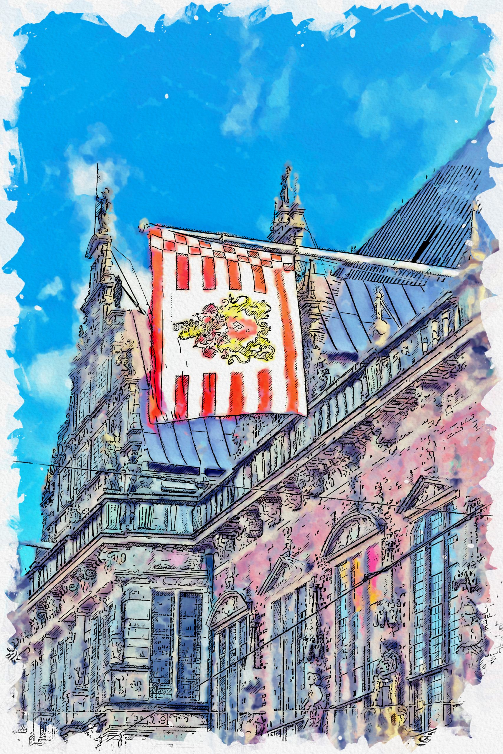 Das Wahrzeichen der Stadt, die Speckflagge am Rathaus.