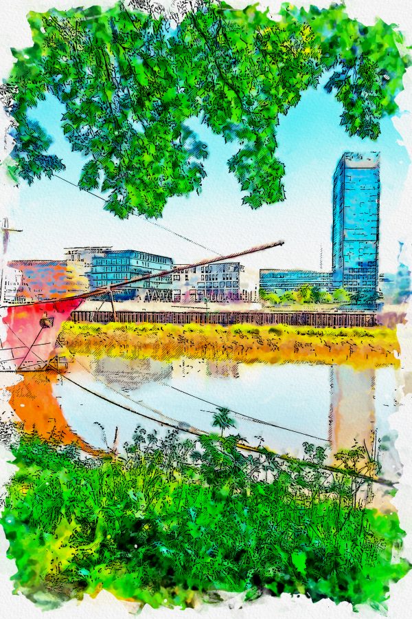Die neue Skyline der Stadt, die Weser und die รberseestadt.